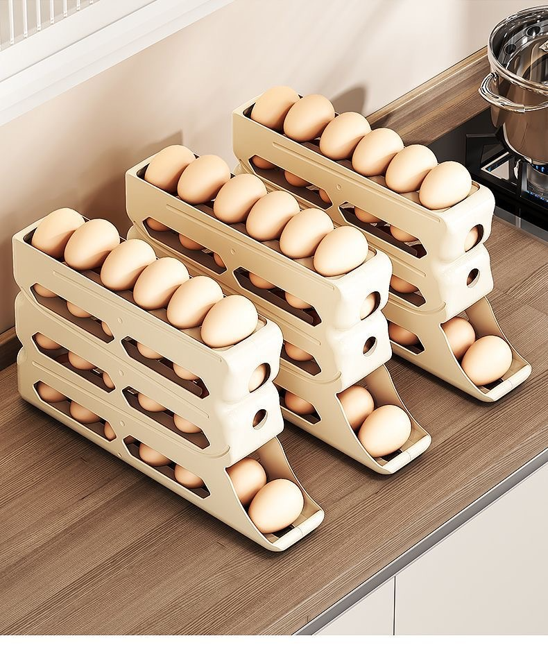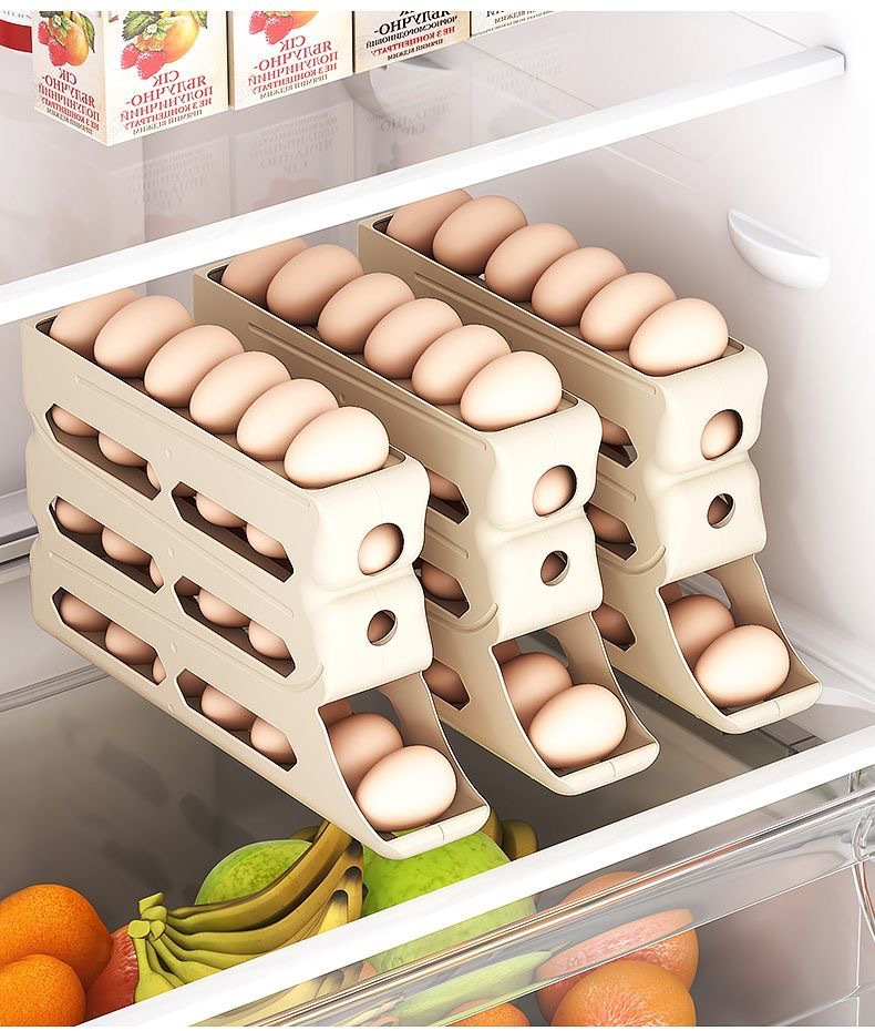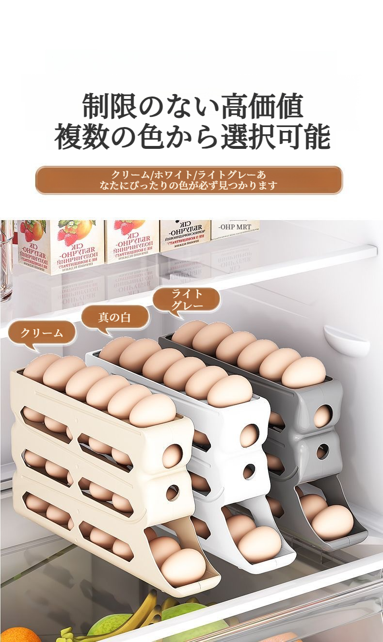 家庭用キッチンオーガナイザー 卵パックホルダー 冷蔵庫サイドドア自動卵ローラーオーガナイザー
